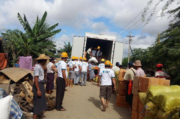 2016年8月,曼德勒地區(qū)發(fā)生水災(zāi),緬甸曼德勒海螺向受災(zāi)群眾捐贈(zèng)賑災(zāi)物資