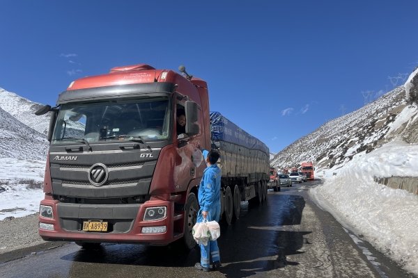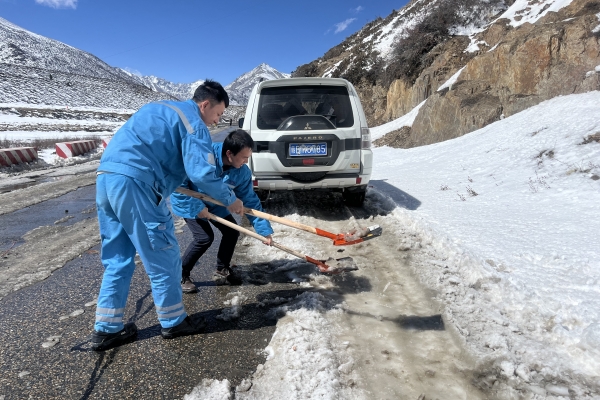 西藏八宿海螺學(xué)雷鋒志愿服務(wù)隊(duì)組織清理318國(guó)道積雪,并為滯留司機(jī)發(fā)放午餐。