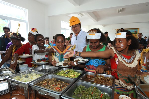 印尼是全世界最大的穆斯林國(guó)家,中方員工和印尼員工在價(jià)值觀、風(fēng)俗文化、宗教信仰、工作和生活習(xí)慣等方面存在著很大的差異?!拔▽捒梢匀萑耍ê窨梢暂d物”,印尼項(xiàng)目公司在推動(dòng)工程建設(shè)的同時(shí),完善辦公、食宿設(shè)施,不斷地改善員工工作生活環(huán)境。深入推行用工本土化,發(fā)揮中方員工傳幫帶作用,經(jīng)常性開(kāi)展培訓(xùn)交流,使印尼籍員工逐步融入海螺管理文化。充分尊重當(dāng)?shù)氐娘L(fēng)俗習(xí)慣,每逢重大節(jié)日精心策劃聯(lián)歡活動(dòng),增進(jìn)中印員工溝通與友誼,積極參加當(dāng)?shù)佚S月、圣誕節(jié)活動(dòng),向當(dāng)?shù)匦W(xué)、教堂、周邊社區(qū)捐贈(zèng)物資用品,融洽地企關(guān)系?!昂B菔莻€(gè)很好的企業(yè),他們招收當(dāng)?shù)厝嗽诤B莨ぷ?,解決了印尼人的就業(yè)困難。我支持海螺在印尼發(fā)展?!庇∧酺ABA-LONG縣縣長(zhǎng)如此說(shuō)道。