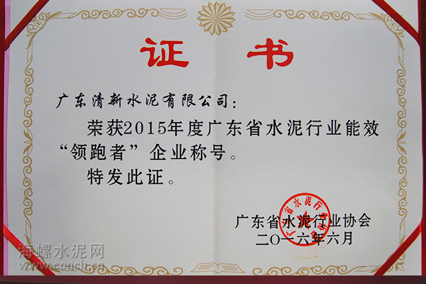 2016年6月14日,廣東省水泥行業(yè)能源管理體系報(bào)告會(huì)暨2015年水泥行業(yè)能耗對(duì)標(biāo)表彰會(huì)在梅州市塔牌集團(tuán)舉行。會(huì)上,廣東清新水泥有限公司榮獲“2015年廣東省水泥行業(yè)能效‘領(lǐng)跑者’企業(yè)”稱號(hào),在全省54家參與能效對(duì)標(biāo)水泥企業(yè)中獨(dú)占鰲頭,成為年度廣東省水泥行業(yè)唯一獲此稱號(hào)企業(yè)。