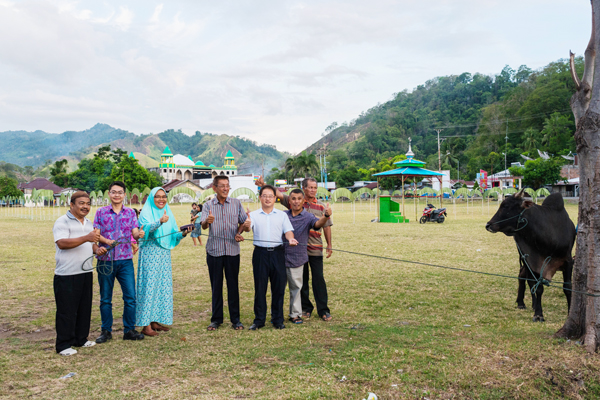 為尊重當(dāng)?shù)仫L(fēng)俗,促進(jìn)海螺企業(yè)文化與印尼文化的有機(jī)融合,9月12日,北蘇海螺公司總經(jīng)理曾國(guó)華會(huì)同合作方代表Pak Hong,分別拜訪solog村、Inobonto村負(fù)責(zé)人,并在兩村清真寺舉行了贈(zèng)牛儀式。