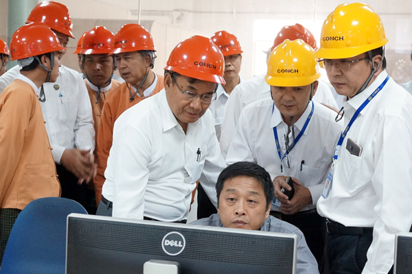 3月4日上午,U Ohn Win部長(zhǎng)一行參觀考察了緬甸海螺自備電站和5000t/d生產(chǎn)線,并在礦山上對(duì)公司石灰石礦、砂巖礦、鐵礦石礦等采礦權(quán)證辦理中需協(xié)調(diào)解決事項(xiàng)進(jìn)行了現(xiàn)場(chǎng)布置。