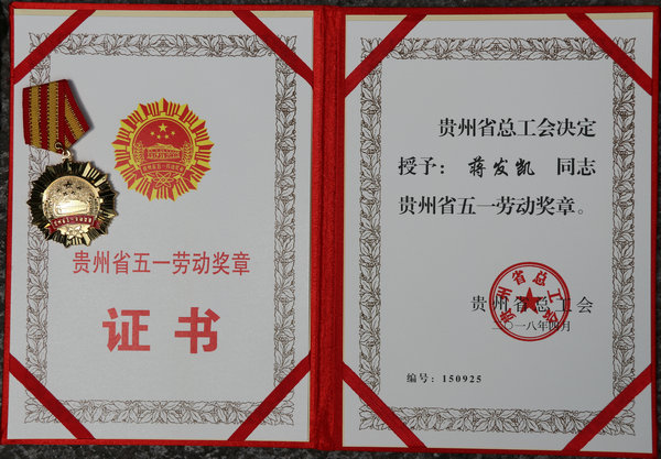 貴陽(yáng)海螺ckk主管蔣發(fā)凱榮獲貴州省五一勞動(dòng)獎(jiǎng)?wù)?/h3>