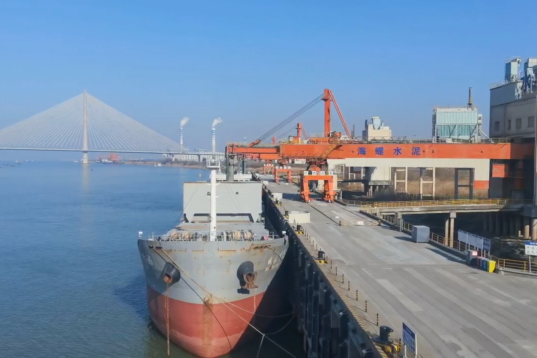 蕪湖海螺公司碼頭船只正等待發(fā)運