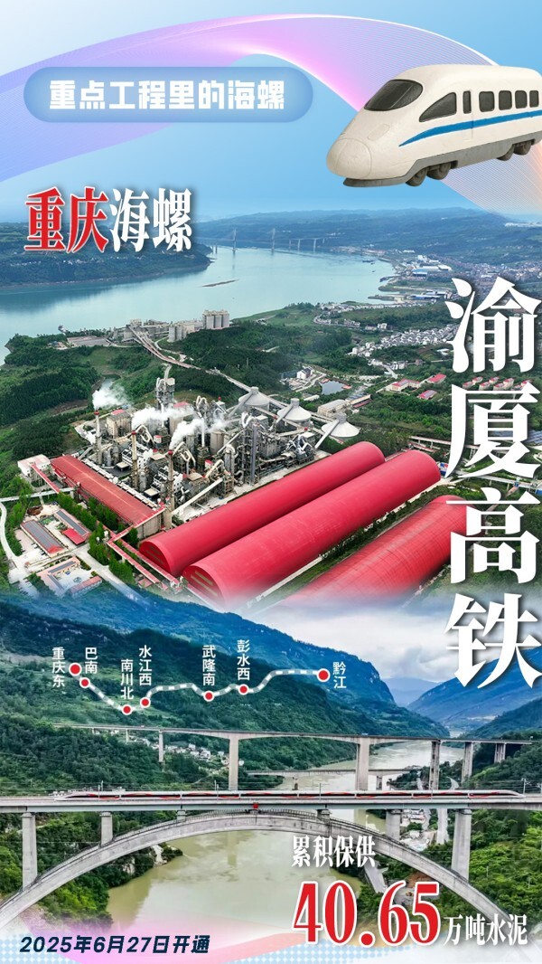 重慶海螺為渝廈高鐵重慶東至黔江段項(xiàng)目建設(shè)累積供應(yīng)40.65萬(wàn)噸高品質(zhì)水泥。