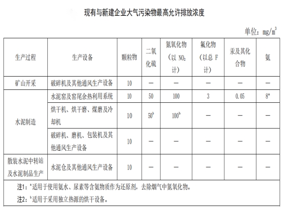 廢氣污染物排放執(zhí)行安徽省地方標準《水泥工業(yè)大氣污染物排放標準》(DB34/3576-2020)中規(guī)定限值。