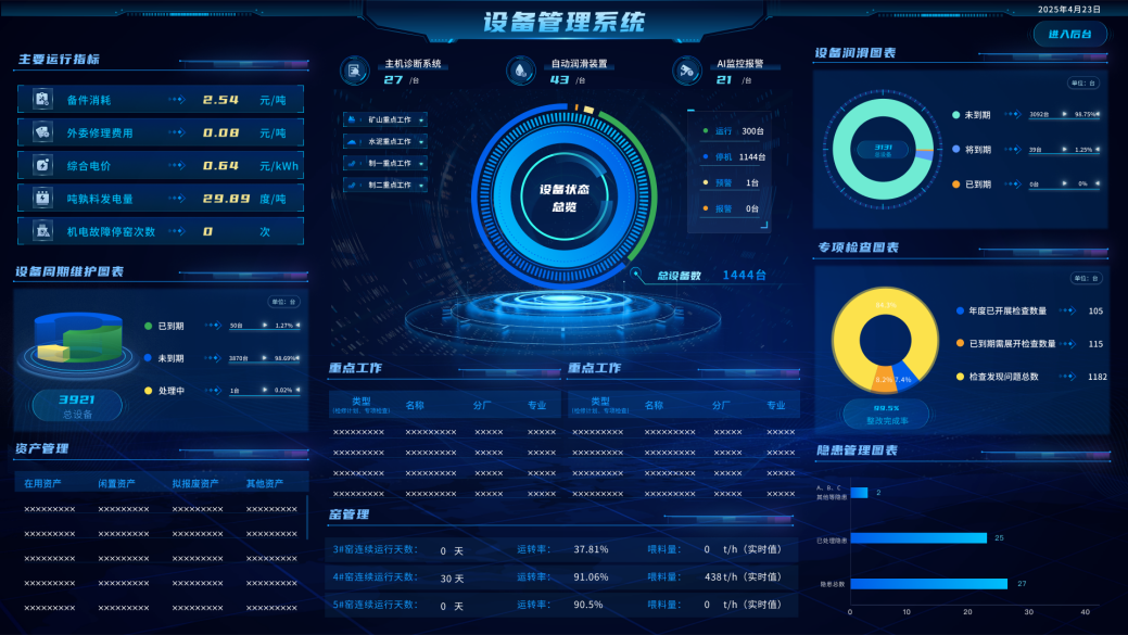 2023年8月,荻港海螺開始引入設(shè)備管理系統(tǒng),2023年11月開始投入使用,截止目前全套系統(tǒng)已完成主機(jī)在線診斷、皮帶機(jī)AI監(jiān)測(cè)、智能潤(rùn)滑、現(xiàn)場(chǎng)視頻監(jiān)控以及DCS系統(tǒng)數(shù)據(jù)融合,實(shí)現(xiàn)了生產(chǎn)線管理“設(shè)備巡檢智能化,維護(hù)維修一體化”。