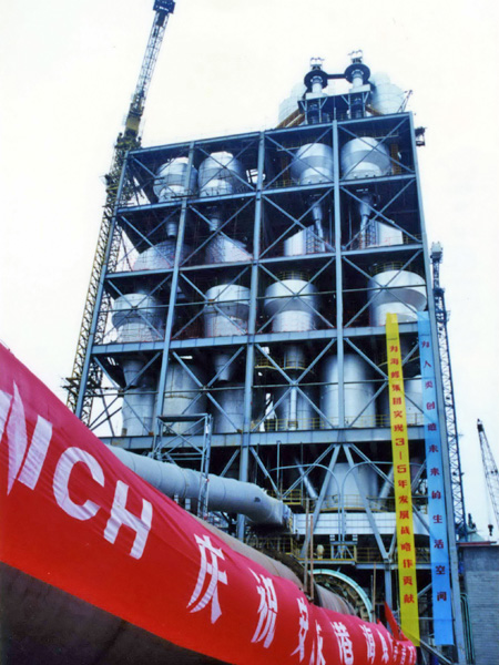首條生產(chǎn)線預(yù)熱器吊裝