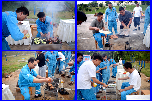 隨著燒烤環(huán)節(jié)開始,各烤爐前頓時炊煙裊裊,香氣四溢。大家自主動手,互相協(xié)作,品嘗著自己親手烤制的美食,享受著忙碌工作后的愜意時光。各部門員工跨桌交流,舉杯暢飲,言笑晏晏,其樂融融。