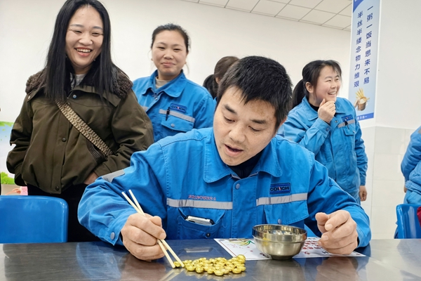 “財(cái)源廣進(jìn)·眼疾手快夾‘元寶’”活動(dòng),三人一組限時(shí)比拼,參與者需用筷子夾起滑潤(rùn)的金色“元寶”,并快速移至碗中。游戲中既有穩(wěn)中求快的策略,也有巧勁與耐心的考驗(yàn)。隨著計(jì)時(shí)開(kāi)始,現(xiàn)場(chǎng)不時(shí)傳來(lái)歡笑與鼓勵(lì)聲,無(wú)論是成功夾起時(shí)的喜悅,還是“元寶”滑落時(shí)的輕嘆,都讓這場(chǎng)象征“招財(cái)進(jìn)寶”的傳統(tǒng)趣味活動(dòng)顯得格外生動(dòng)熱鬧。